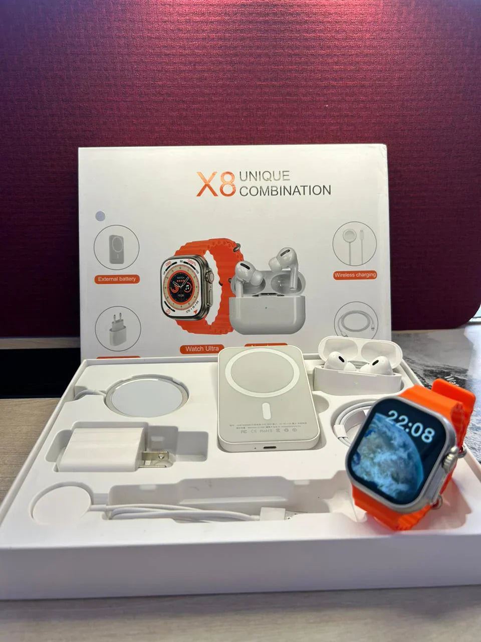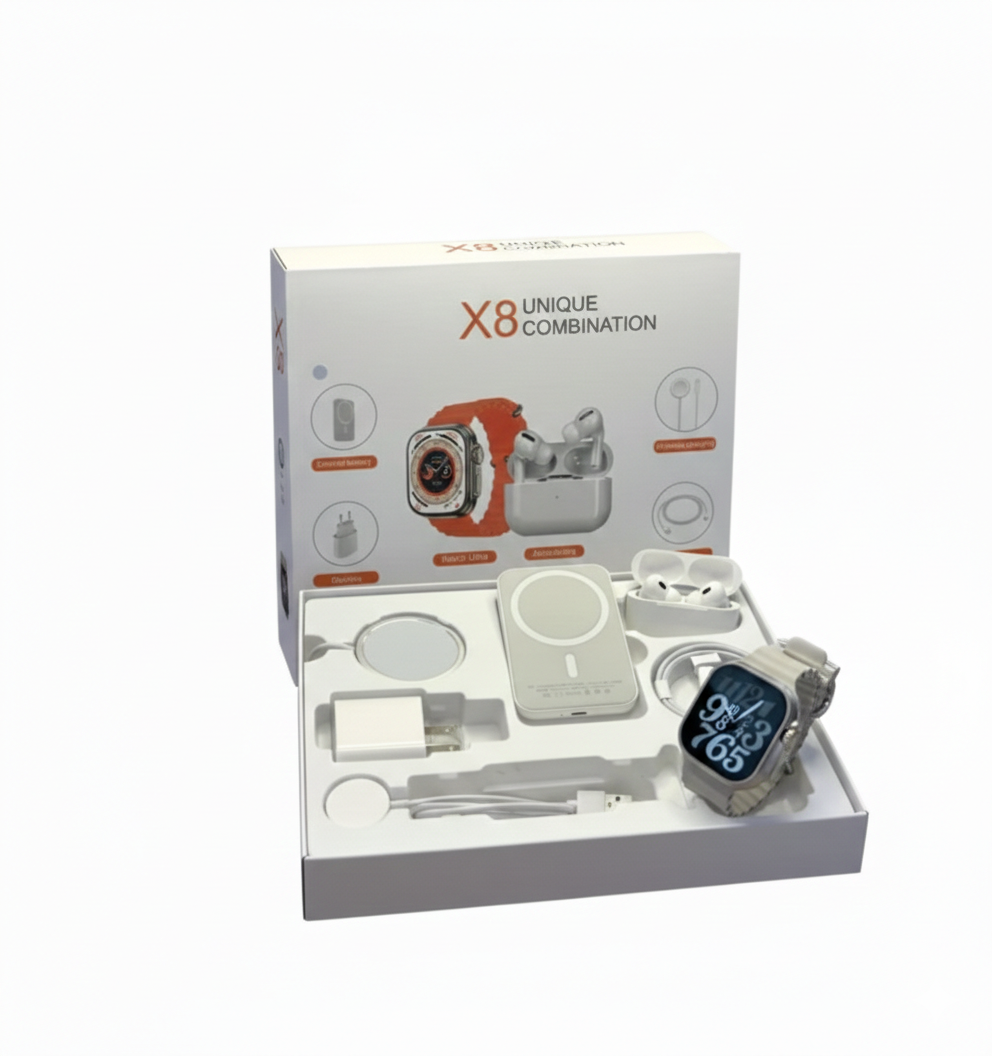 Imagina un mundo donde la tecnología se adapta a ti. Con nuestro combo de productos, experimentarás la comodidad de la última generación en Reloj Inteligente Serie 8 Ultra, auriculares inalámbricos de alta calidad y carga rápida y eficiente.