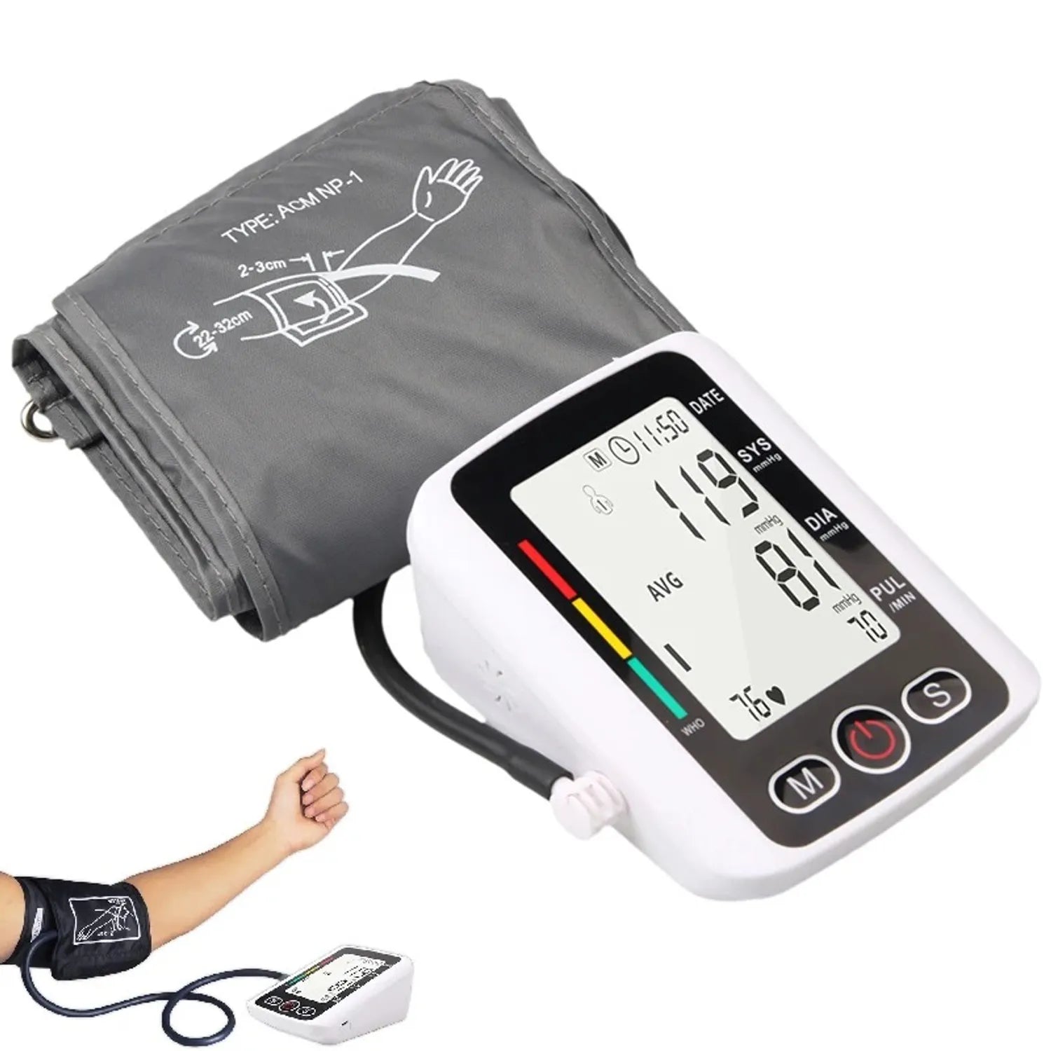 📦 Incluye: Tensió metro, brazalete ajustable (22–32 cm), manual de uso, estuche de almacenamiento.
